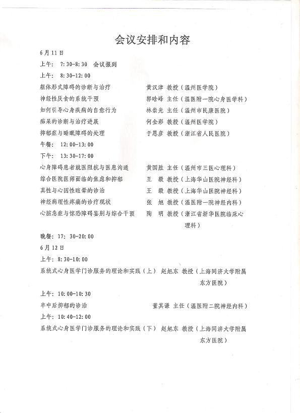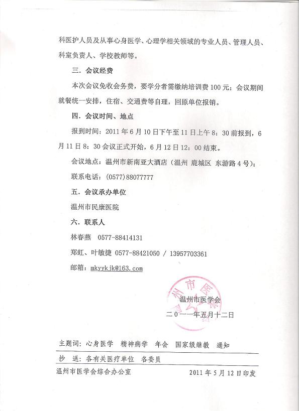 2011年温州市医学会心身医学学会、精神病学学会学术年会暨国家级继续教育项目的通知