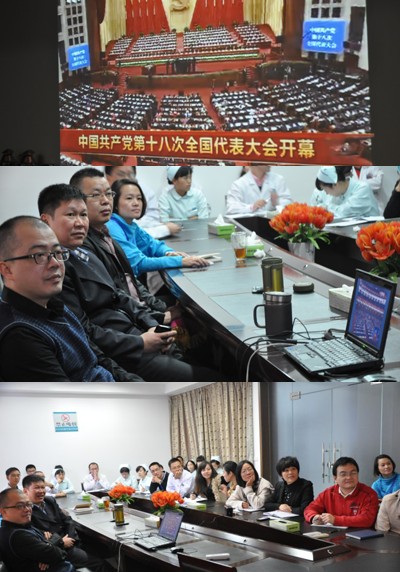 11月8日,中国共产党第十八次全国代表大会在北京隆重召开。为进一步深入学习贯彻党的精神,上午9时,丝袜a片 党总支组织全体党员在三楼会议室集中收看“十八大”开幕盛况。全体党员认真聆听胡锦涛总书记作的《坚定不移沿着中国特色社会主义道路前进,为全面建成小康社会而奋斗》主题报告,感受党领导全国人民走过的光辉历程和所取得的巨大成就的鼓舞。