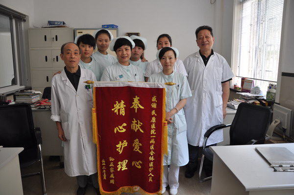 医护人员连日来对病人孙正的精心护理和热心关爱,病人家属特意制作了一面锦旗送到丝袜a片