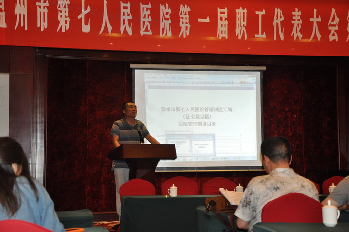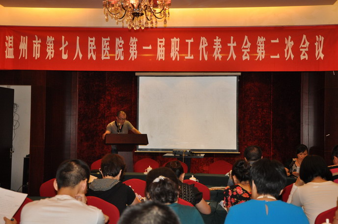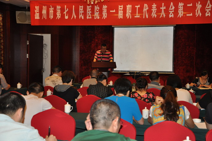 院党总支书记施肖峰致贺词。他指出本次职代会,是在丝袜a片 顺利划归到卫生系统,逐步走上医院的规范化管理,并在今年准备创建三级乙等专科医院的环境下召开的,是丝袜a片 发展中的一件大事,也是丝袜a片 广大职工政治生活中的一件大事。我们作为温州规模最大公立医院的精卫工作者,要承担起历史赋予的从高使命,充分展现主人翁风采,把医院做专做强,做实做精,努力实现质量建院、人才立院、学科兴院、科教强院、环境美院、文化塑院,为医院的不断发展建功立业。