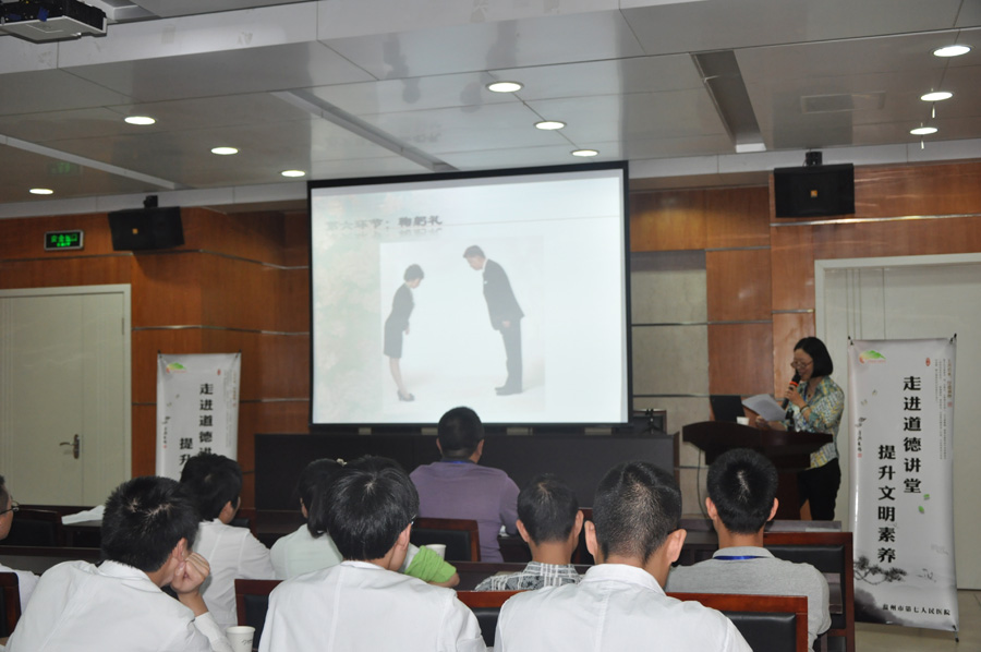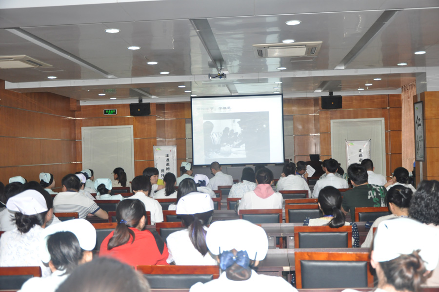 在老年康复大楼6楼会议室,组织开展了“道德讲堂”活动,60余人参加了此次活动。活动以做反省、唱歌曲、诵经典、学模范、发善心、鞠躬礼、做善事、送吉祥为主要内容。以温馨的人性启蒙取代深奥的政治说教,以社会公德、职业道德、个人品德为主线,积极倡导助人为乐、见义勇为、诚实守信、敬业奉献、孝老爱亲等行为。