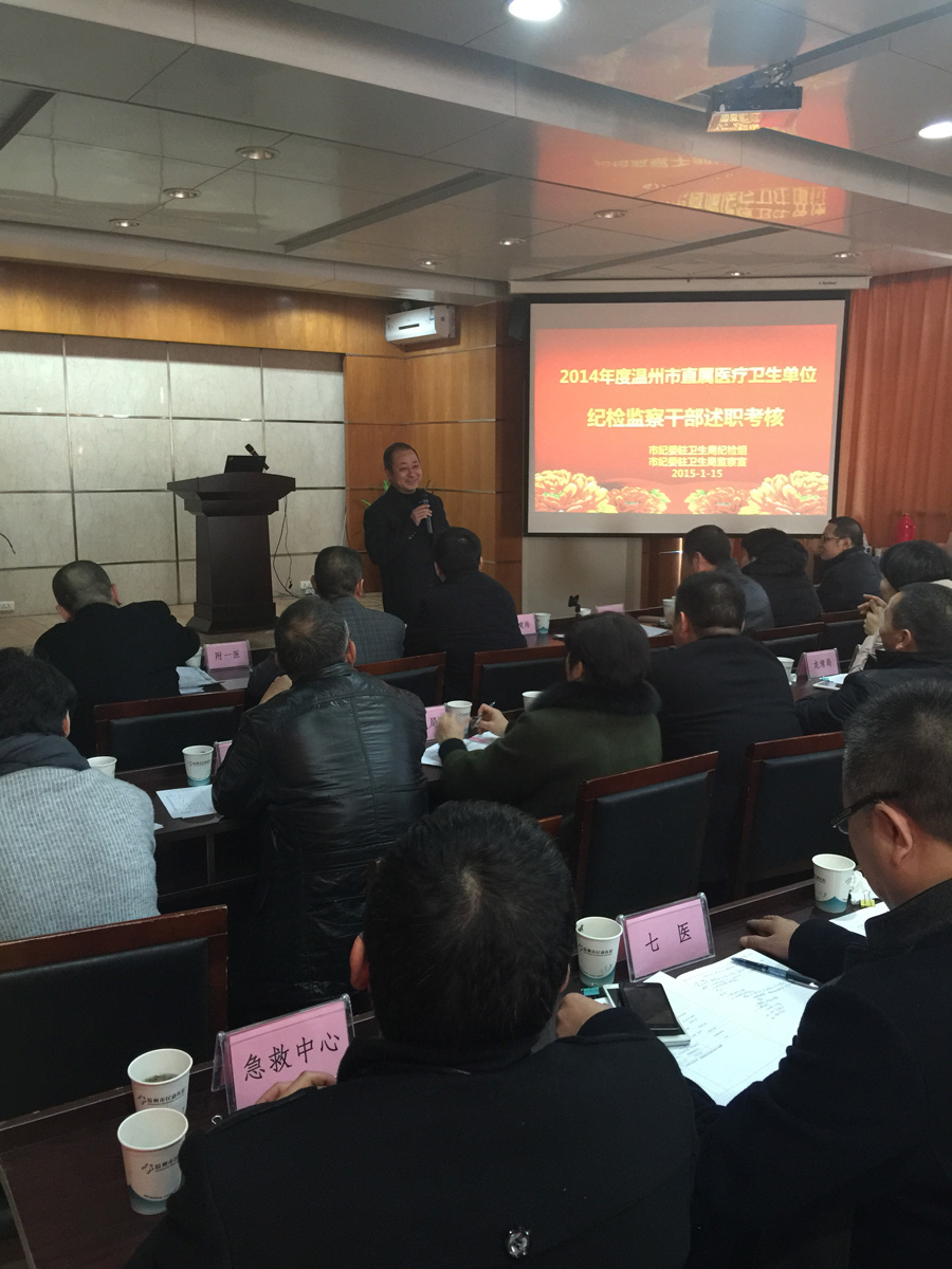 会上,市直属医疗卫生单位纪检监察干部共21位人进行了述职,每人的述职虽然只有短短8-10分钟,却将各自单位一年来的纪检监察工作亮点呈现无余,引来现场阵阵掌声。考核结束后连萱书记、陈金锋书记、阮棉钦处长、胡奕奕书记、市中西医结合医院吴胜华书记对本次述职考核作点评。韩建海局长作重要讲话,他充分肯定卫生系统纪检监察团队的工作,并对本次年度考核的方式给予高度评价,认为具有创新精神,走在全市纪检监察工作前列。