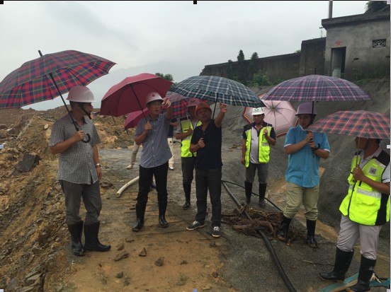 徐象平董事冒雨视察了现场施工进展情况,重点询问了两家施工对此次抗台的防汛防台措施和防御应急预案,并强调:首先要求大家要充分认识当前防汛防台的重要性和艰巨性,要以极端负责的态度做好各项工作。责任人要及时进岗到位;要采取紧急有效措施,增强自身抵御台汛能力,确保人员、设备的安全;要密切关注水情风情变化情况,随时调整和强化防御工作,及时上报重大险情,全力打好当前防台保卫战。