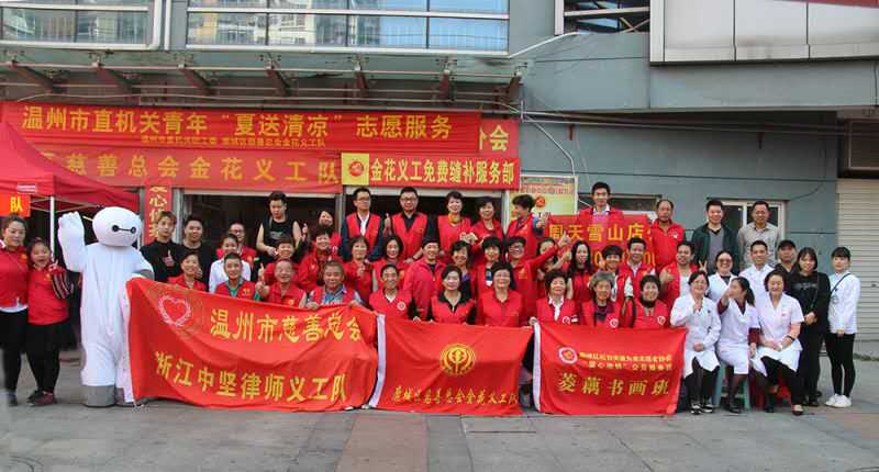2016年11月6日上午,市区庆年坊社区热闹非凡,到处都能遇见穿着“红马甲”的义工。此次活动由温州金花义工队、温州鹿城区慈善总会、温州市第七人医院等单位联合为辖区居民提供小家电维修、测量血压、血糖、义诊等便民服务。