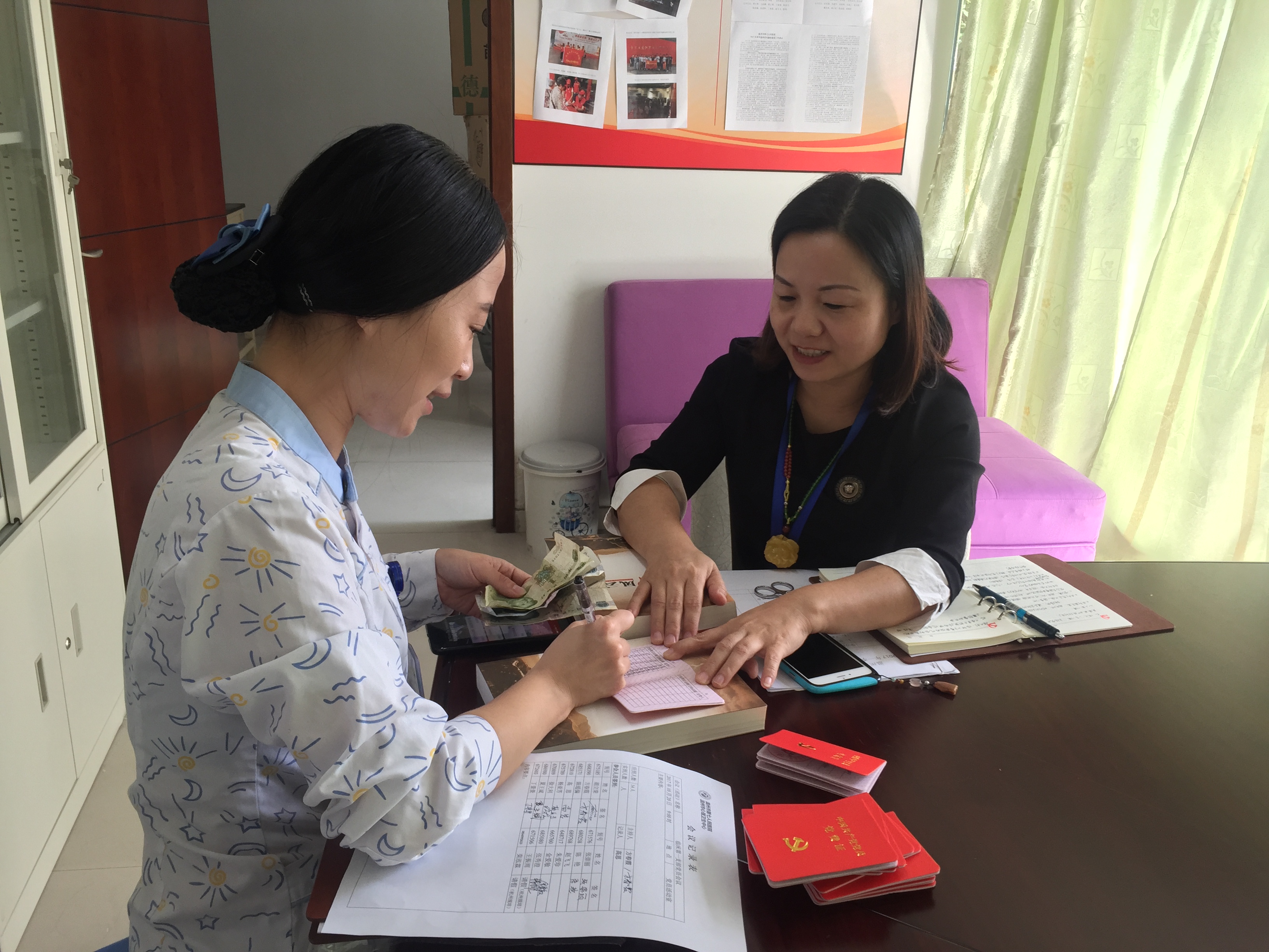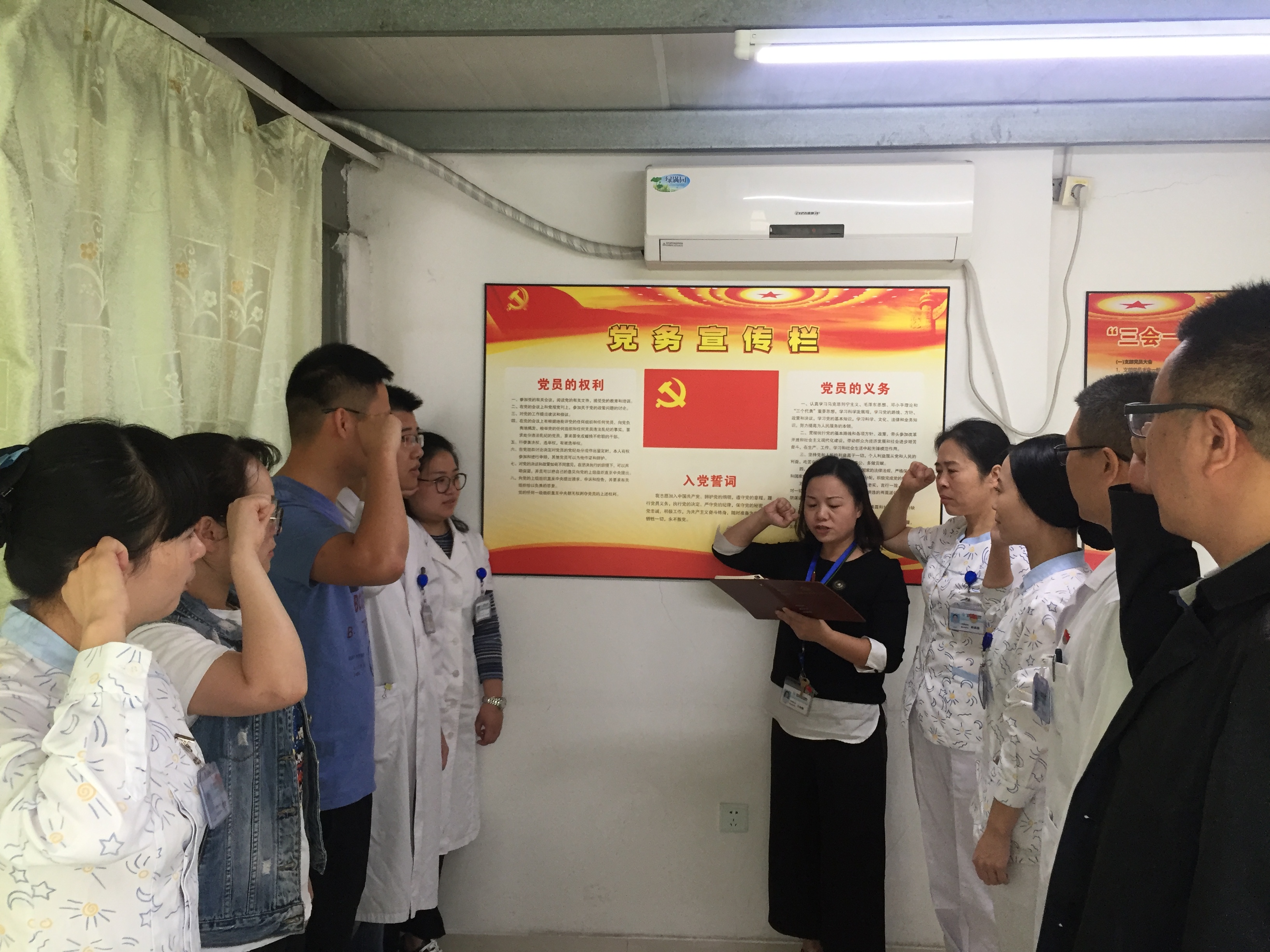 首先,按照市委组织部关于印发《温州市支部主题当日活动指导书》的通知([2017]121号)文件的精神要求统筹安排,每个党员按时签到,主动缴纳当月的党费。方春霞支部书记带领全体党员重温入党誓词、学习党章中的党员必须履行的义务和重申“三会一课”制度及党内组织生活六制六规范。通过诵读,使入党誓词和党章内容熟记于心,进一步强化党章意识、党员意识、责任意识。随后,党员就此活动针对如何做好住院患者的安全的研讨并发言。