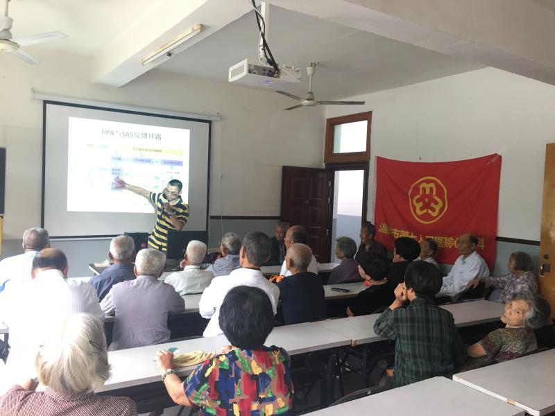 当得知第七人民医院的医护人员来到这个山村时,村民们早早的已在村文化礼堂等待,陈浩然医生送去了一堂“高血压、糖尿病”的健康宣教,面对这么多老人、残疾人,陈医生用简单易懂的方言讲解了高血压、糖尿病的相关知识。