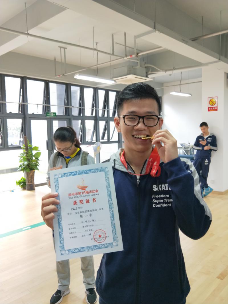 在温州市第16届运动会行业系统部体能测试比赛中传来捷报,市七医参赛队员取得了优异的成绩。其中,市七医代表队荣获男子个人全能金牌,参赛选手林崇光荣获“道德风尚奖”。