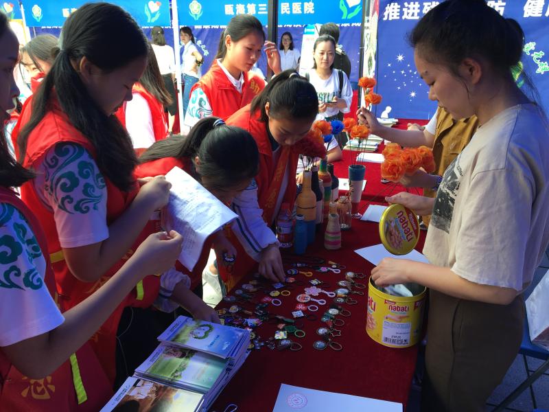 活动启动仪式在瓯海区府广场举行,市七医医务工作者积极参与,并带去丝袜a片 精神障碍康复患者手工制作的精美工艺品进行义卖,展现该院康者康复成果。义卖吸引了大批热心市民的关注,在了解失七医精神残疾患者康复情况后,纷纷购买手工艺品,献出自己的一份爱心。此外,市七医还为到场的残疾人士提供免费的血压测量,提供精神康复、残疾预防宣传及相关服务。通过展板及发放科普宣传册的形式进行精神疾病宣传。现场测量血压20余人、发放资料100余份。