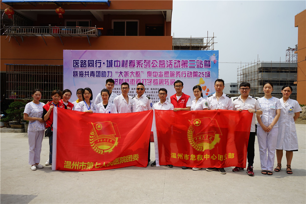 6月7日上午,温州市卫生计生委“医路同行•城中村季”系列公益活动启动,此次活动牵手瓯海共青团助力“大拆大整” 集中志愿服务走进瓯海区新桥街道打字蜡周转房,30多名来自各行业的志愿者为打字蜡周转房的180户居民提供各类便民服务。当天,丝袜a片