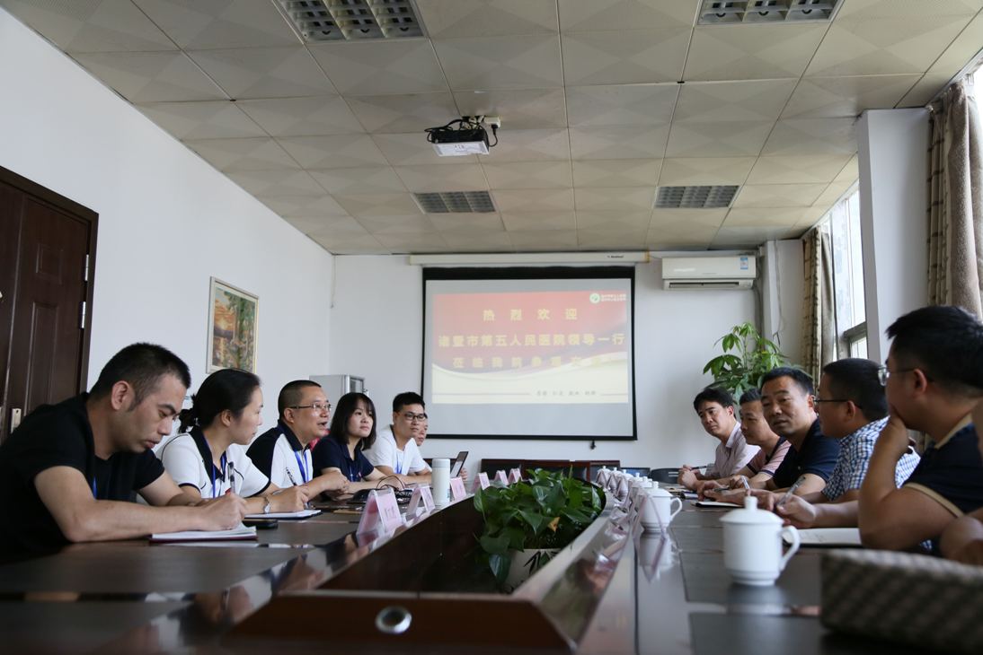 交流会上,诸暨市卫计局监督疾控科科长王东海,诸暨市第五人员医院院长周锋伟、副院长傅剑东,市疾控中心慢病科科长何亮等一行,在市七医门诊4楼会议室内听取专题汇报,市七医副院长张伟就“一站式”医疗救助服务情况以PPT形式图文并茂地进行介绍,院办、医保办、信息科、防治科等相关科室展示对接、释疑解答。随后,与会人员还进行座谈,就“一站式”救助服务的特点、优势,面临的困难和难点进行深入探讨交流。