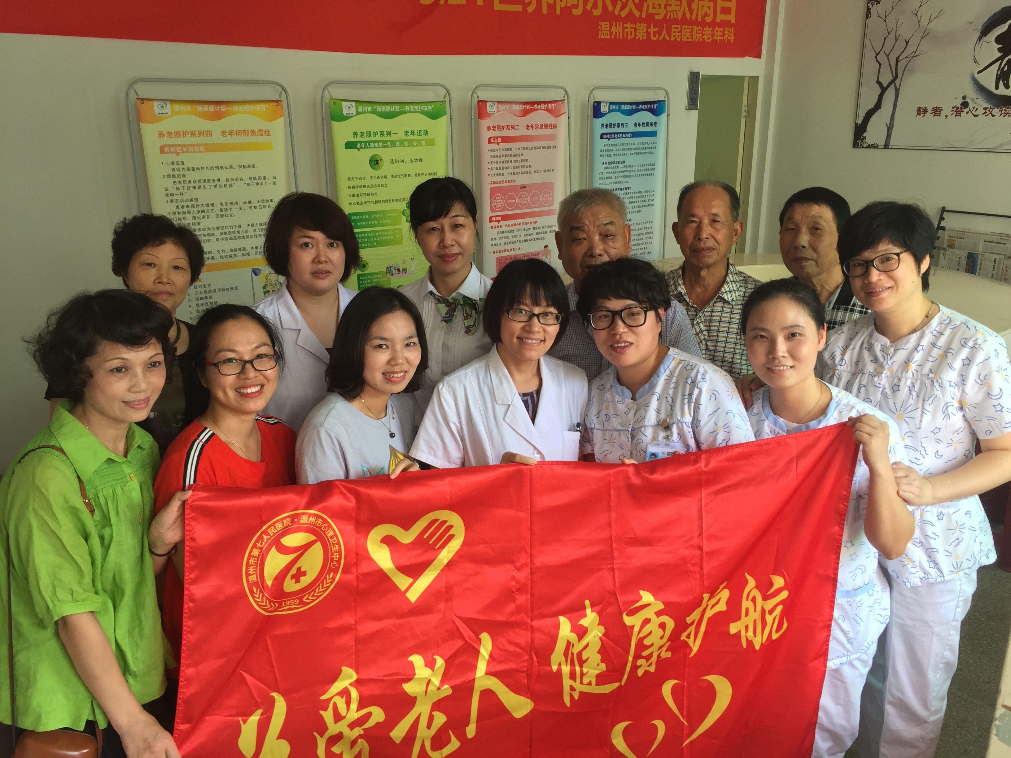 为了更好地普及宣传预防老年痴呆的基本知识,传播科学的生活方式,使“关注被偷走的记忆,关注老人”的理念更加深入人心。由温州市卫计委家庭发展处牵头,温州市第七人民老年科承办的公益活动,分别于09月19日、21日走进苍南宜山镇、文成珊溪镇养老照护中心,为老人健康“把脉”。