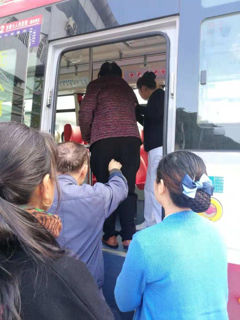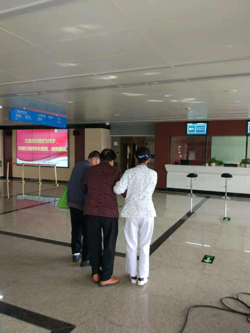记得第一次见到这对夫妇的时候,是阴雨天气,老奶奶不稳的步伐,引起了导医的注意,生怕老人家滑倒立即上前去帮忙搀扶,经打听才知道他们要去潘桥院区看望住院的儿子。他们早上6:00起床出发,经转车先到西山院区,再坐42路公交车去潘桥院区。他们每天准时7:30左右到我们西山院区赶9:00的公交去潘桥,在这期间,导医们都会很好的安排他们,不是送开水,就是扶老奶奶上厕所,并安全护送他们上公交,还要联系潘桥的门诊导医做好交接。