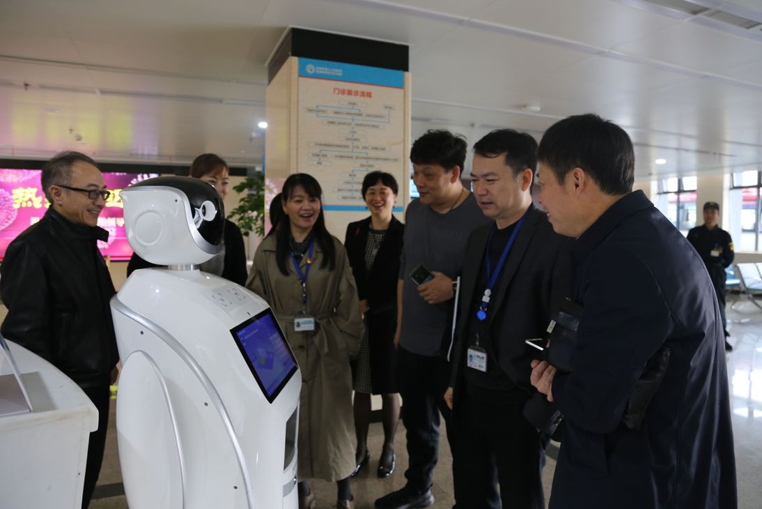 “晓医,你好!”交流组一行来到门诊大厅,与医院的智能机器人“晓医”进行对话。据悉,采用讯飞AIUI人机智能交互技术的“晓医”拥有超过1万条的医学常识,“医疗+科技”的魅力赢得了交流组的点赞。随后,交流组先参观了检验科、康复科、老年科,林小东详细地介绍了如近红外脑功能成像等先进仪器的功能、用法和各个病区的基本情况。