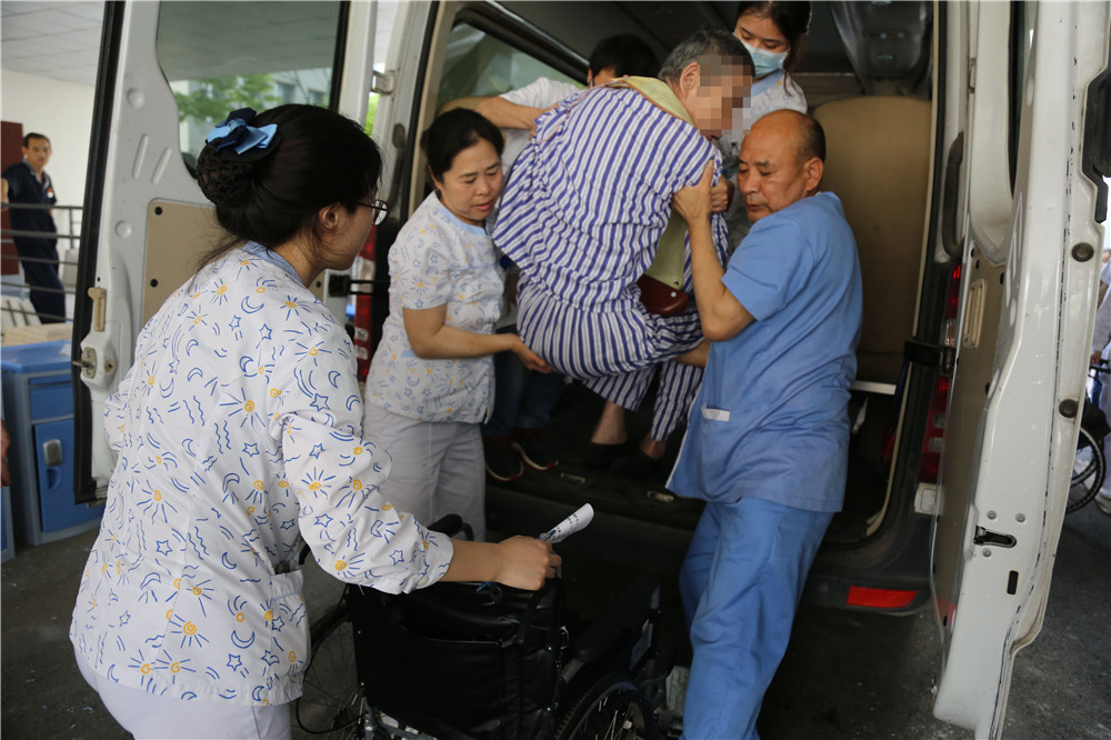 5月17日,潘桥院区迎来了一批特殊的“客人”,他们是老年精神科的患者,搬迁工作涉及到60位住院病人,其中行动不便的病人就有50多位,卧床、轮椅出行的有10多位,可以说是工作任务重、压力大。