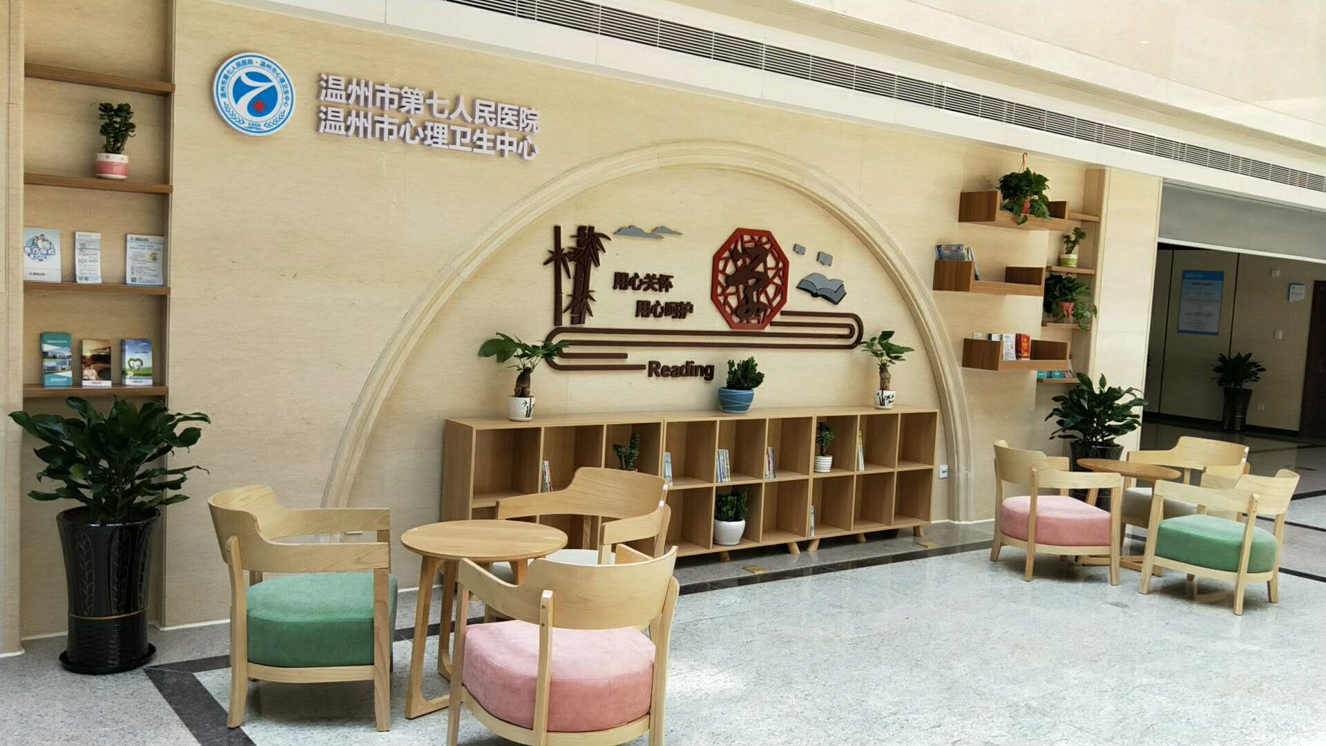 等,患者及家属在等待的同时,也能放松心情,缓解等待焦虑的情绪。暖色的桌椅能让人感受到医院温馨的氛围,家属之间也可以坐下来互相沟通交流。