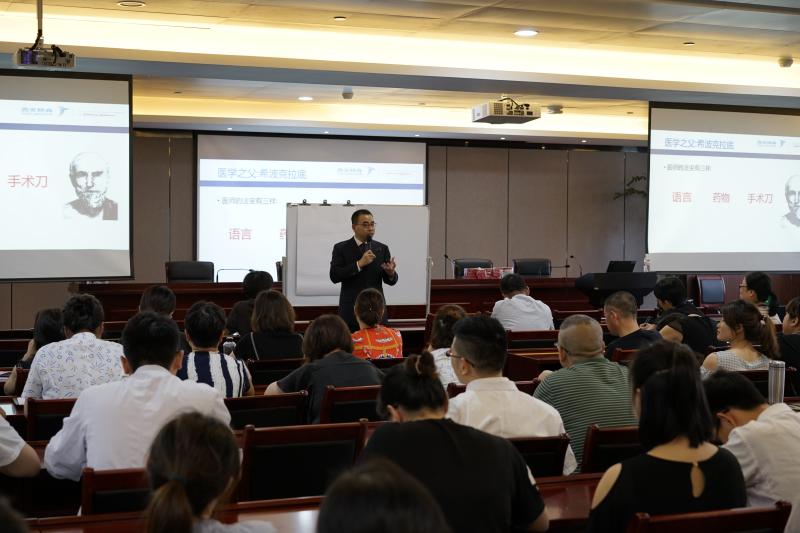 在潘桥院区门诊楼四楼会议室举办优质服务专题培训班,特邀中华全国工商业联合会人才中心客座教授、北京大学工学院总裁班特约讲师朱琳到丝袜a片