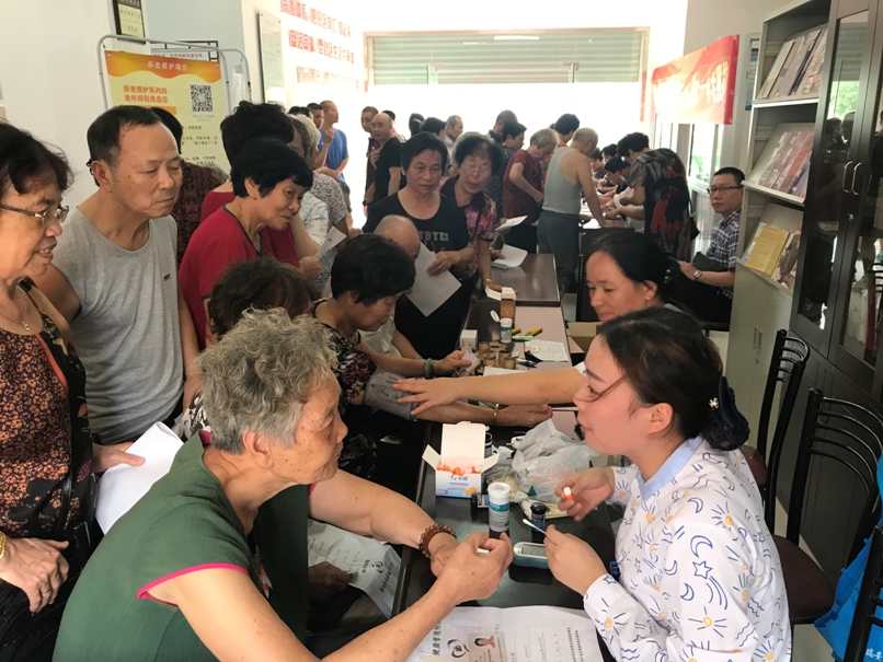 踏着秋风带着一朝气勃勃的晨曦,温州第七人民医院老年科组建的老年“护卫队”来到了平阳鳌江镇水深村的卫生社区中心。9月18日八点半整,我们老年科陈光东副主任与各位医生们满脸微笑、热情细致的为老人们详细解答:改变不良生活习惯,早期预防老年痴呆的基本知识,让更多老人了解痴呆,正视痴呆,不让“老小孩”们脑海中的“橡皮擦”擦去那美好而又宝贵回忆。而护士及心理咨询师们分别为老人带去测量血压、血糖、艾灸贴、智力筛查等“暖人心”的检查,本次共服务了80余名老人,为他们送去了环保手袋,安心手环及一些药品。