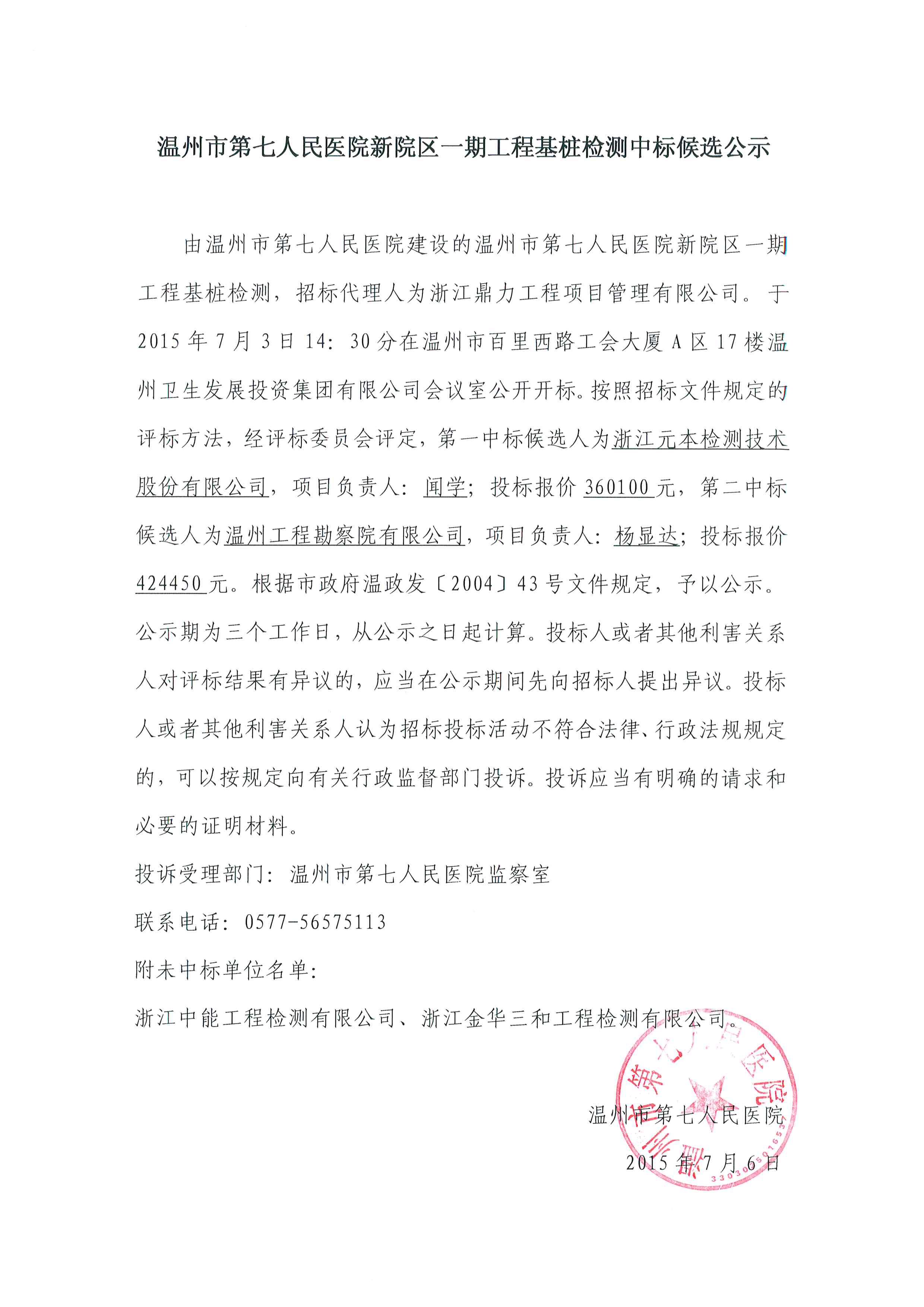 丝袜a片 新院区一期工程基桩检测中标候选公示