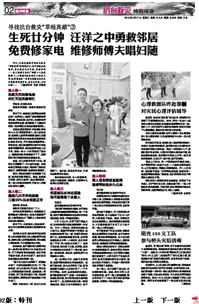 晚报讯 强台风“莫兰蒂”虽已过去,却给部分灾民留下不愿回想的记忆。昨天,我市一支由9人组成的心理危机救援队赴泰顺县泗溪镇的灾区一线,走村入户,对灾民进行心理评估和辅导,帮助灾民卸下心里的重担,重拾对生活的信心和希望。