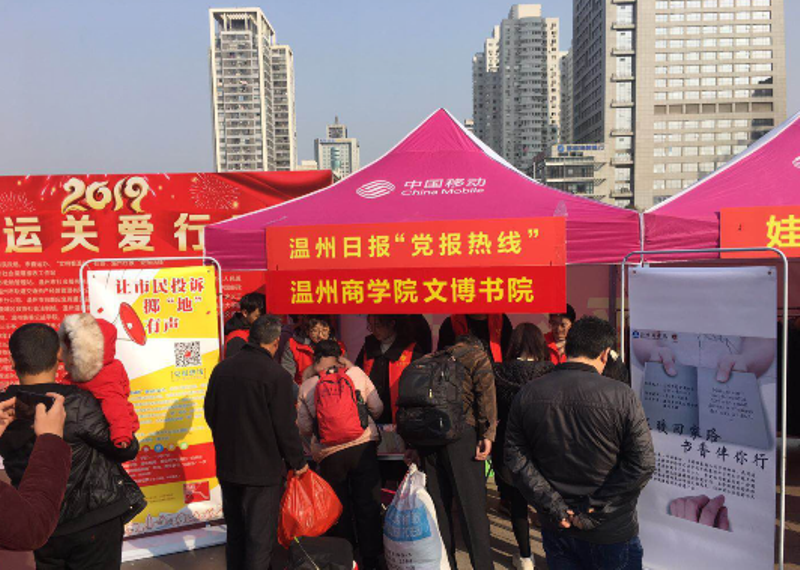 温州商学院国际学院辅导员陈丹芝介绍,这是文博书院第一次参加春运关爱行动,一共有15名志愿学生和4名老师参加。同学们非常积极地准备此次活动,通过去寝室收集、去协作的信息工程学院收集、网上购买了一共800多本适合各个年龄段孩子阅读的书籍。
