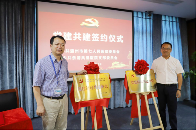 7月14日,在温州市精神医学专科联盟工作例会上,中共丝袜a片 委员会与中共乐清凤凰医院支部委员会,举行党建共建结对签约仪式。这标志着温州精神专科联盟党建+精神医学共建新平台的正式诞生。