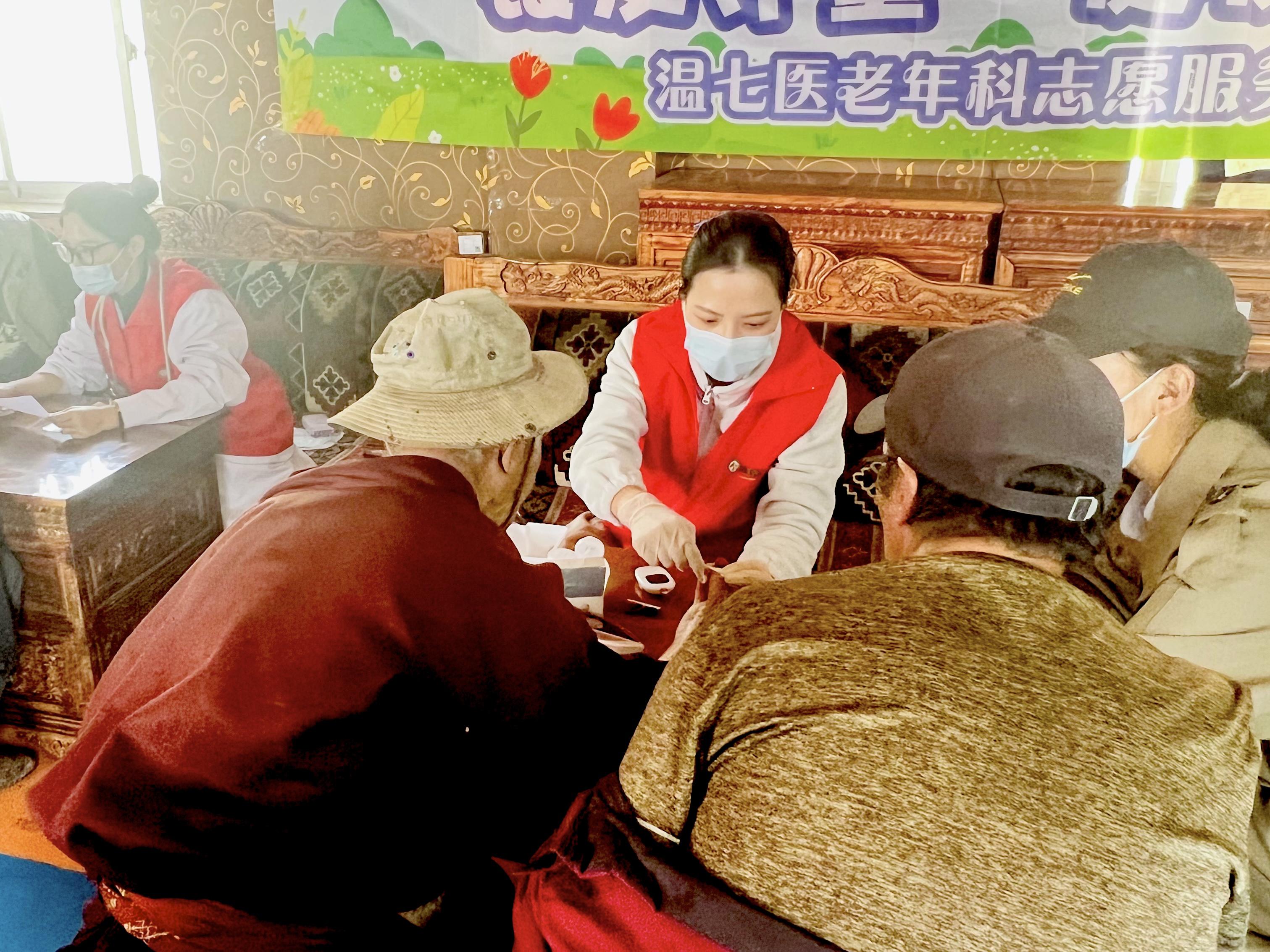 西藏自治区那曲市嘉黎县是“银发守望”志愿服务队此行的目的地。义诊活动在当地的一家集中供养中心开展,那里住着近百名七八十岁的老人,这一年龄段,无论身体还是心理都需要健康指导。